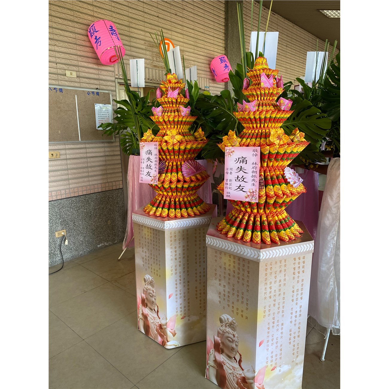 首頁 喪禮百貨 心經蓮花寶塔(底座或上座會依現貨出貨) 商品型錄 心經蓮花寶塔(底座或上座會依現貨出貨) NT$ 4,200 供應商: 竹心崗有限公司 銷售地區 (詳細範圍): 高雄市, 屏東縣 商品流水號: 2022050019 此商品已售出次數:2 商品類別: 喪禮百貨 > 紙錢/折紙類 > 蓮花塔/金銀磚塔 購物操作說明: 分享: 分享 自訂數量: 10 25 50 75 100 150 200 數量 (單位:對 ) 1 小計 NT$0 備註事項: 加入購物車 我要結帳 回上一頁 回上一頁 客服諮詢(加Line好友): 商品說明 商品說明 商品類別:百貨類 產地 高雄 材質 紙類 尺寸 長:50CM 寬:50CM 高:180CM 使用說明 無花朵凋謝更換問題,無時間限制可提早送。無天氣多變食品變質問題,更無二次回收利用等不肖行為。純手工A級蓮花紙製作,高度約180cm,莊嚴大方環保。於公祭後焚燒贈與往生者更具意義,並免除喪家事後處理問題。 產品特色 鑑於目前喪家治喪期間,親朋好友為表對往生者敬輓之意,常送罐頭塔.花圈.羅馬柱.蘭花等禮品已為時下常態,由於天氣多變,在加上品質不穩,鮮花凋謝等事後難處理問題,因而又多了【蓮花寶塔】奠儀禮品。 全部評價 客戶評價 (2) 廠商總評 ( 3 ) 客戶評價 [商品到貨] 送貨地址:屏東縣屏東市 送貨時間: 2023-12-29 商品到貨照片: [商品到貨] 送貨地址:高雄市橋頭區 送貨時間: 2023-06-24 商品到貨照片: 總筆數:2 供應商評價 5 很好 好 普通 不好 很不好 3 0 0 0 0 相似商品 如意寶塔(款式依現有商品出貨) NT$4,700 蓮花金條塔 NT$4,600 盤龍寶塔 (新竹縣/市)-紙箱款式不固... NT$4,500 金磚蓮花寶塔 NT$4,500 170cm 仙鶴塔(基隆) NT$4,300 孝獅塔(款式依現有商品出貨) NT$4,000 170cm孝獅塔(底座款式不固定) NT$4,000 蓮花牌樓(限殯儀館內) NT$3,900 蓮花塔(款式依現有商品出貨) NT$3,900 藥師琉璃蓮花塔 NT$3,700 金磚塔(款式會隨時調整無法指定) NT$3,000 金磚塔(款式依現有商品出貨) NT$3,000 喪禮百貨/花籃/蓮花/罐頭塔 喪禮服務人員/車輛 商品成功加入購物車 !