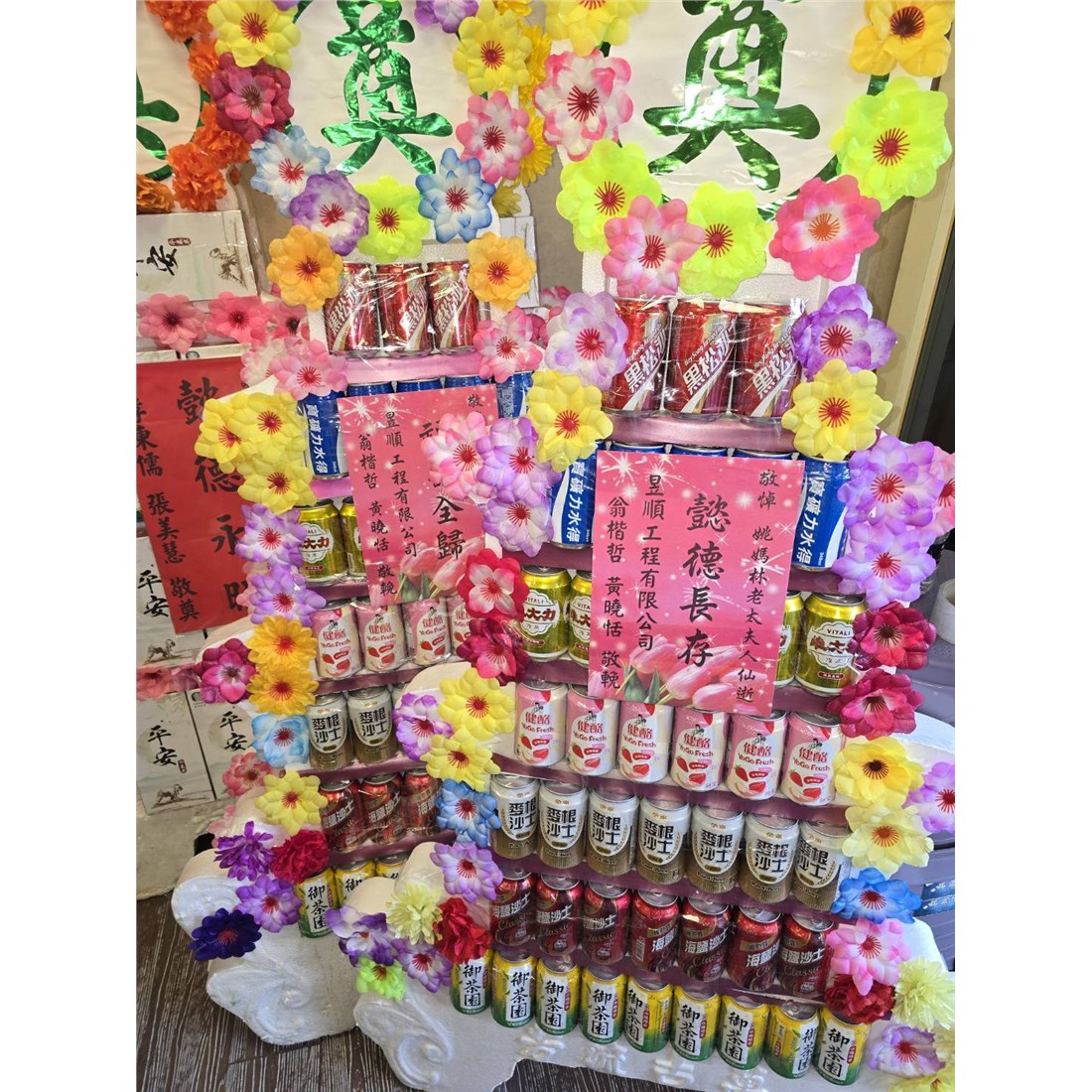 首頁 贈禮3(塔,柱,靈獅...) 平面7層綜合飲罐頭塔 商品型錄 平面7層綜合飲罐頭塔 NT$ 3,000 供應商: 金蘭鮮花店 銷售地區 (詳細範圍): 桃園市 商品流水號: 2022050034 此商品已售出次數:2 商品類別: 贈禮3(塔,柱,靈獅...) > 喪事平面罐頭塔 購物操作說明: 分享: 分享 自訂數量: 10 25 50 75 100 150 200 數量 (單位:對 ) 1 小計 NT$0 備註事項: 加入購物車 我要結帳 回上一頁 回上一頁 客服諮詢(加Line好友): 商品說明 商品說明 商品類別:佈置 主要材質 保麗龍、飲料 配件說明 🧺產品的品牌、包裝等內容物會依現有商品出貨調整不在另行通知、罐頭塔或禮籃的造型及外包裝有時也會不定時更改外觀型狀,但內容物價值不變,客戶於下單前若無法接受,請勿下單!!!🧺若有不清楚建議下單前可以與客服人員聯繫。🧺因內容物為食品類商品,且訂單為客戶確認後下單才會開始客製製作,商品需另組裝完成,送貨到達現場即代表送貨完成,不適用七天鑑賞期無法進行退換貨,若能接受再下單。🧺專業配送,保證產品完整性,商品送達後會拍照回傳,若人員離開後有任何損壞不屬於公司責任。====訂購前請先確認好相關規定,無法接受時請勿下訂單==== 佈置程序 ◆有一說是喪事期間親友有錢出錢、有力出力,其中有些人便會提供食物作為祭品,待出殯以後再由喪家分送給親友,而罐頭塔就是在食物種類越來越多樣的時候所出現的祭品選項之一。 ◆還有一種說法是早期的罐頭以柴米油鹽醬醋茶為主,是由親家所送的。因為治喪期間喪家處理後事十分地忙碌,親家送這些東西表示幫他們在這段時間裡「顧厝」。至於拿罐頭來裝柴米油鹽醬醋茶的原因,大概是因為方便準備、攜帶與保存。 全部評價 客戶評價 (2) 廠商總評 ( 0 ) 客戶評價 [商品到貨] 送貨地址:桃園市桃園區 送貨時間: 2025-12-11 商品到貨照片: [商品到貨] 送貨地址:桃園市桃園區 送貨時間: 2022-10-06 商品到貨照片: 總筆數:2 供應商評價 很好 好 普通 不好 很不好 0 0 0 0 0 相似商品 7層平安米塔(平安米50台斤) NT$12,000 平面九層飲料塔 NT$5,400 6X4台灣好米禮籃 NT$4,950 8尺2綜合罐頭塔 NT$4,200 4X3 平安米塔 NT$4,200 5X4台灣好米禮籃 NT$4,100 7層綜合罐頭塔 NT$4,000 7層飲料罐頭塔 NT$3,750 7層罐頭塔B款(後龍、苗栗、頭屋、南庄) NT$3,200 綜合罐頭塔 NT$2,400 三層綜合食品組禮籃E NT$2,400 喪禮百貨/花籃/蓮花/罐頭塔 喪禮服務人員/車輛 商品成功加入購物車 !