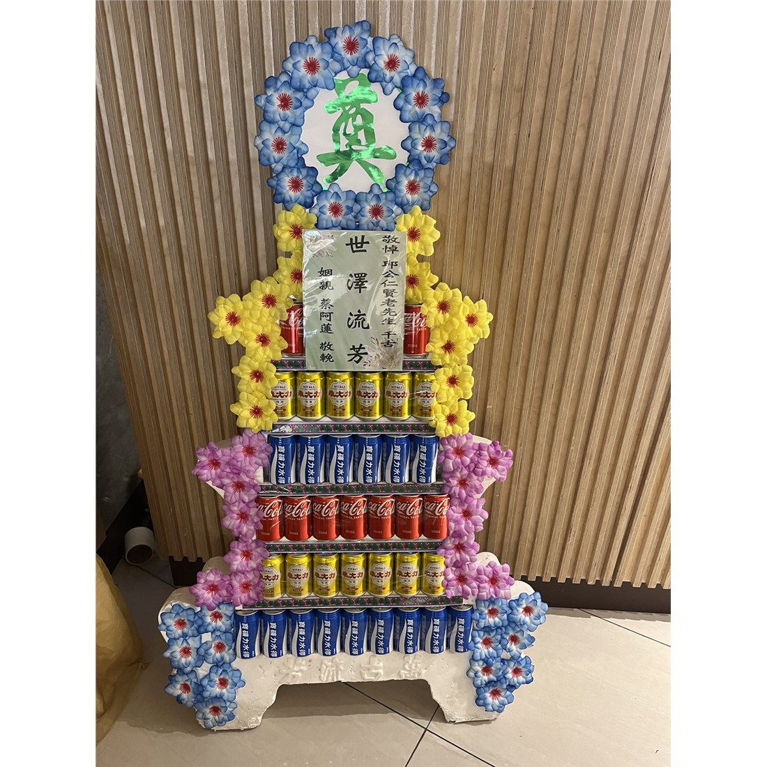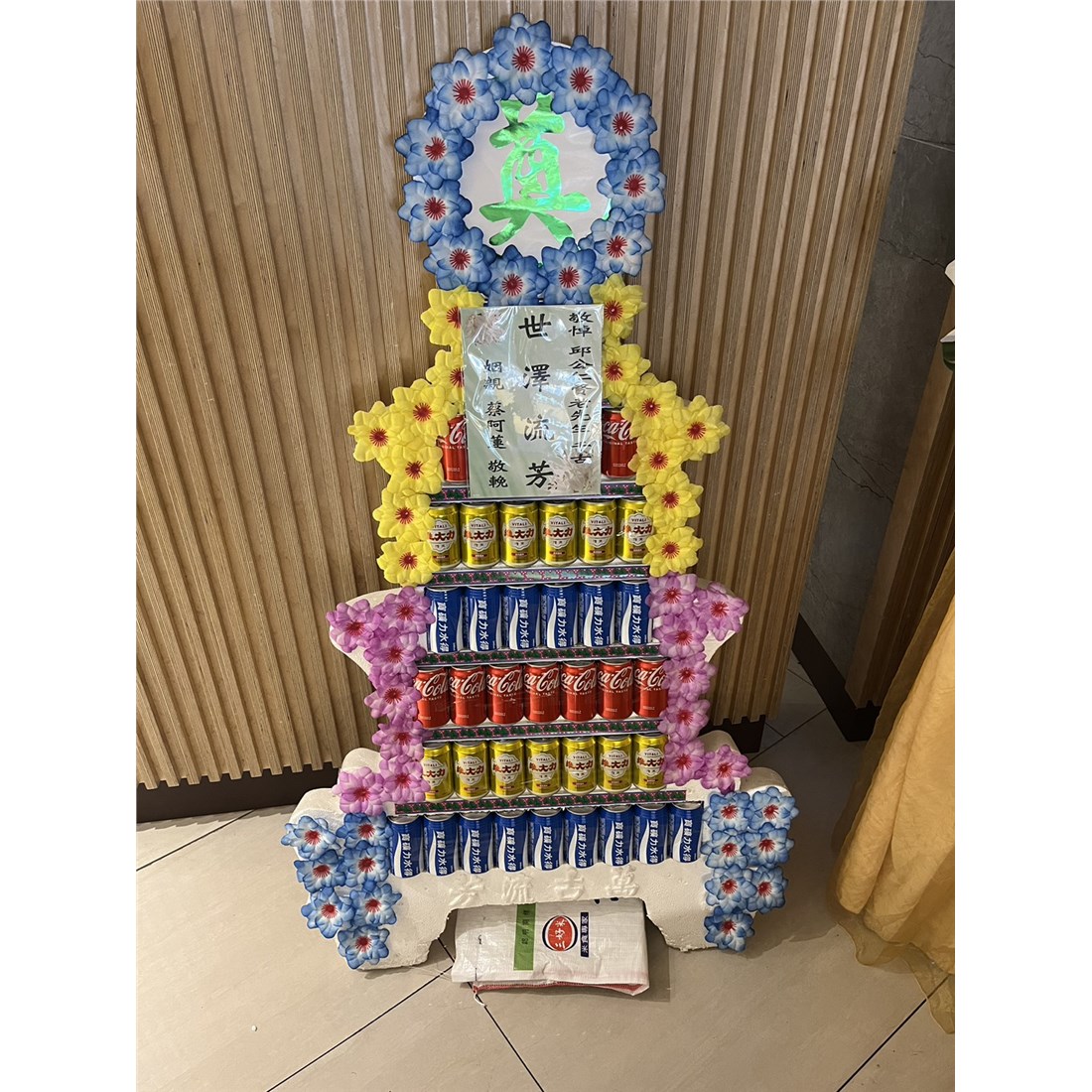 首頁 贈禮3(塔,柱,靈獅...) 7層飲料罐頭塔 商品型錄 7層飲料罐頭塔 NT$ 3,450 供應商: 昌城有限公司 銷售地區 (詳細範圍): 臺北市, 基隆市, 新北市 商品流水號: 2023040154 此商品已售出次數:17 商品類別: 贈禮3(塔,柱,靈獅...) > 喪事平面罐頭塔 購物操作說明: 分享: 分享 自訂數量: 10 25 50 75 100 150 200 數量 (單位:對 ) 1 小計 NT$0 備註事項: 加入購物車 我要結帳 回上一頁 回上一頁 客服諮詢(加Line好友): 商品說明 商品說明 商品類別:百貨類 產地 使用說明 🧺產品的品牌、包裝等內容物會依現有商品出貨調整不在另行通知、罐頭塔或禮籃的造型及外包裝有時也會不定時更改外觀型狀,但內容物價值不變,客戶於下單前若無法接受,請勿下單!!!🧺若有不清楚建議下單前可以與客服人員聯繫。🧺因內容物為食品類商品,且訂單為客戶確認後下單才會開始客製製作,商品需另組裝完成,送貨到達現場即代表送貨完成,不適用七天鑑賞期無法進行退換貨,若能接受再下單。🧺專業配送,保證產品完整性,商品送達後會拍照回傳,若人員離開後有任何損壞不屬於公司責任。====訂購前請先確認好相關規定,無法接受時請勿下訂單==== 產品特色 ◆有一說是喪事期間親友有錢出錢、有力出力,其中有些人便會提供食物作為祭品,待出殯以後再由喪家分送給親友,而罐頭塔就是在食物種類越來越多樣的時候所出現的祭品選項之一。◆還有一種說法是早期的罐頭以柴米油鹽醬醋茶為主,是由親家所送的。因為治喪期間喪家處理後事十分地忙碌,親家送這些東西表示幫他們在這段時間裡「顧厝」。至於拿罐頭來裝柴米油鹽醬醋茶的原因,大概是因為方便準備、攜帶與保存。 全部評價 客戶評價 (17) 廠商總評 ( 1 ) 客戶評價 [商品到貨] 送貨地址:臺北市文山區 送貨時間: 2025-10-31 商品到貨照片: [商品到貨] 送貨地址:臺北市大安區 送貨時間: 2025-09-24 商品到貨照片: [商品到貨] 送貨地址:新北市板橋區 送貨時間: 2025-07-21 商品到貨照片: [商品到貨] 送貨地址:基隆市暖暖區 送貨時間: 2025-05-21 商品到貨照片: [商品到貨] 送貨地址:基隆市仁愛區 送貨時間: 2025-04-11 商品到貨照片: [商品到貨] 送貨地址:臺北市大安區 送貨時間: 2025-02-19 商品到貨照片: [商品到貨] 送貨地址:臺北市大安區 送貨時間: 2025-01-06 商品到貨照片: [商品到貨] 送貨地址:臺北市大安區 送貨時間: 2024-12-18 商品到貨照片: [商品到貨] 送貨地址:基隆市信義區 送貨時間: 2024-10-22 商品到貨照片: [商品到貨] 送貨地址:臺北市大安區 送貨時間: 2024-10-22 商品到貨照片: 總筆數:17 1 2> 供應商評價 5 很好 好 普通 不好 很不好 1 0 0 0 0 相似商品 7層平面平安米塔-台北( 300克*42... NT$6,500 C05平面米+油罐頭塔 NT$6,300 7層飲料罐頭塔(大品牌飲料) NT$5,700 C10平面食用油罐頭塔(旗山,美濃,六龜... NT$5,400 9層平面綜合飲料罐頭塔 NT$4,950 7層平面飲料平安米塔(300克) NT$4,800 五層食品罐頭禮籃(高雄) NT$3,900 4X4台灣好米禮籃 NT$3,750 平面四層平安米塔(圓滿米) NT$3,750 {貨運配送限喪宅}平面七層罐頭塔-705... NT$2,500 五層綜合飲料組禮籃 NT$2,300 {貨運配送限喪宅}平面七層罐頭塔-703... NT$2,000 喪禮百貨/花籃/蓮花/罐頭塔 喪禮服務人員/車輛 商品成功加入購物車 !