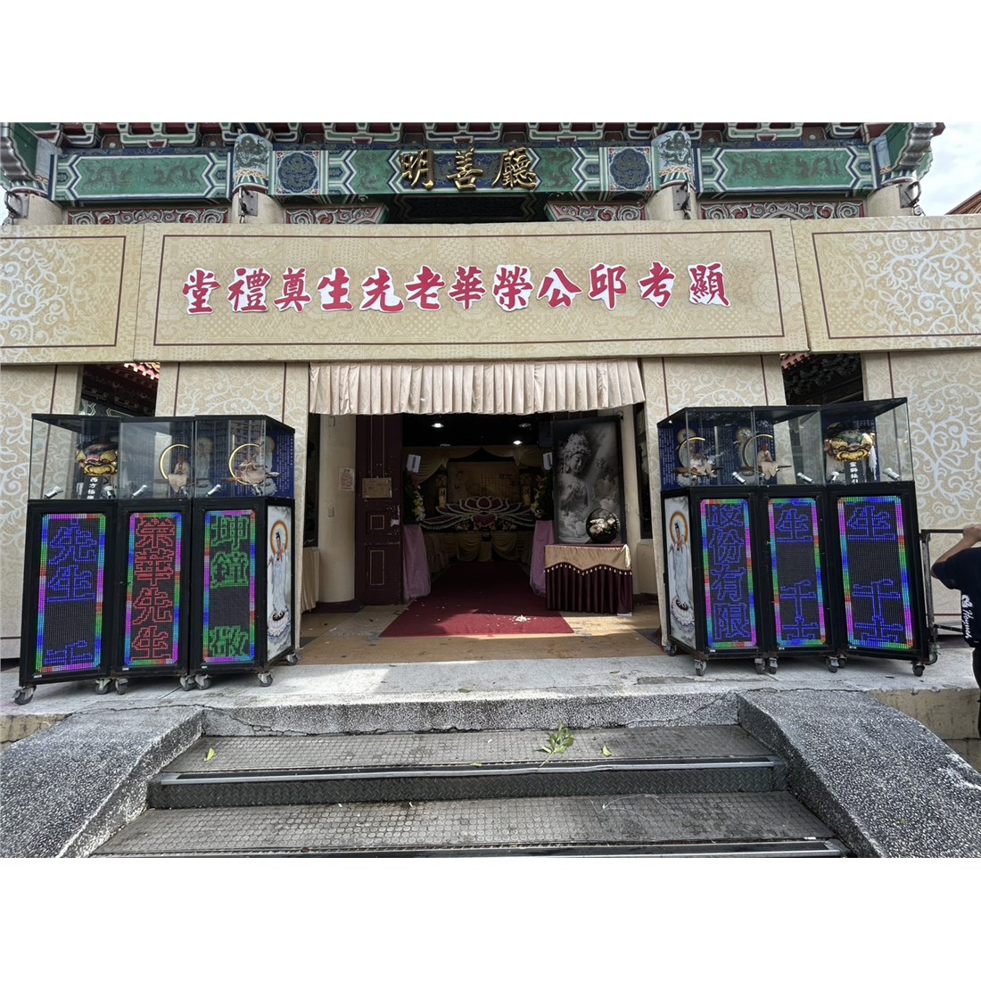 首頁 贈禮3(塔,柱,靈獅...) 觀音燈櫃(3對/1天) 商品型錄 觀音燈櫃(3對/1天) NT$ 4,500 供應商: 菩心圓 銷售地區 (詳細範圍): 臺北市, 基隆市, 新北市 商品流水號: 2024060005 此商品已售出次數:3 商品類別: 贈禮3(塔,柱,靈獅...) > 喪事出租靈獅/租用擺設 購物操作說明: 分享: 分享 自訂數量: 10 25 50 75 100 150 200 數量 (單位:3對 ) 1 小計 NT$0 備註事項: 加入購物車 我要結帳 回上一頁 回上一頁 客服諮詢(加Line好友): 商品說明 商品說明 商品類別:佈置 主要材質 若商品有使用LED跑馬燈時,送達指定現場後回傳訂購人確認無誤後,視同商品訂單己完成。🛻送達地點為自宅時,若因喪家需調整場地、電源或因其它等因素自行將電源拔除時為不可抗之因素(基本上若將電源再插上時即可恢復原本狀態),若需要人員再次前往時需收取部份車資。🛻送到殯儀館時會需依照殯儀館等相關規定,若因館內規定或因喪家各項因素需將電源拔除為不可抗之因素(基本上若將電源再插上時即可恢復原本狀態),若需要人員再次前往時需收取部份車資。====商品若需移動場地時會另收移動費用,請洽客服人員========若地點無法使用LED燈時會改為花卡========訂購前請先確認好相關規定,無法接受時請勿下訂單==== 尺寸 高:240cm 配件說明 此商品較為大座無法擺放走道中間★基隆地區:限定基隆殯儀館內★新北市三峽區:限定三峽殯儀館內★請於使用前3日訂購★依據客戶所設定的送貨日及時間提早送至會場★請依照各地區殯儀館規定使用★如有疑問請洽線上客服或撥打客服專線★請加入客服LINE詢問現貨商品 佈置程序 ★習世音菩薩以救苦救難、仁慈悲憫而表現,所以分別於名號前冠以大智、大行、大悲。★特請菩薩來接引,表示為逝世親人好好的引路,護送至西方佛陀世界,是孝道的一種方式,希望在菩薩的守護下,逝世親人可以前往西方的路上,能不受任何干擾。 全部評價 客戶評價 (3) 廠商總評 ( 0 ) 客戶評價 [商品到貨] 送貨地址:新北市板橋區 送貨時間: 2025-11-12 商品到貨照片: [商品到貨] 送貨地址:新北市板橋區 送貨時間: 2025-08-10 商品到貨照片: [商品到貨] 送貨地址:臺北市大安區 送貨時間: 2025-04-13 商品到貨照片: 總筆數:3 供應商評價 很好 好 普通 不好 很不好 0 0 0 0 0 相似商品 巨無霸松柏(15天) NT$37,500 320cm巨型靈獅(14天) NT$33,000 大靈獅(14天) NT$23,000 230cm站獅 (告別式/1天/3對出貨... NT$18,000 300cm巨獅/靈獅 (安靈14天內) NT$15,000 趴獅(1天) NT$14,400 靈獅(趴獅/10天) NT$12,000 米獅(14天)(600克米 40包) NT$11,500 站獅(270CM)豎靈到告別式 NT$10,000 180cm 中型靈獅 (14天內) NT$6,000 氣泡燈柱(告別式)/三對 NT$5,400 三藏取經 (14天內) NT$3,750 喪禮百貨/花籃/蓮花/罐頭塔 喪禮服務人員/車輛 商品成功加入購物車 !