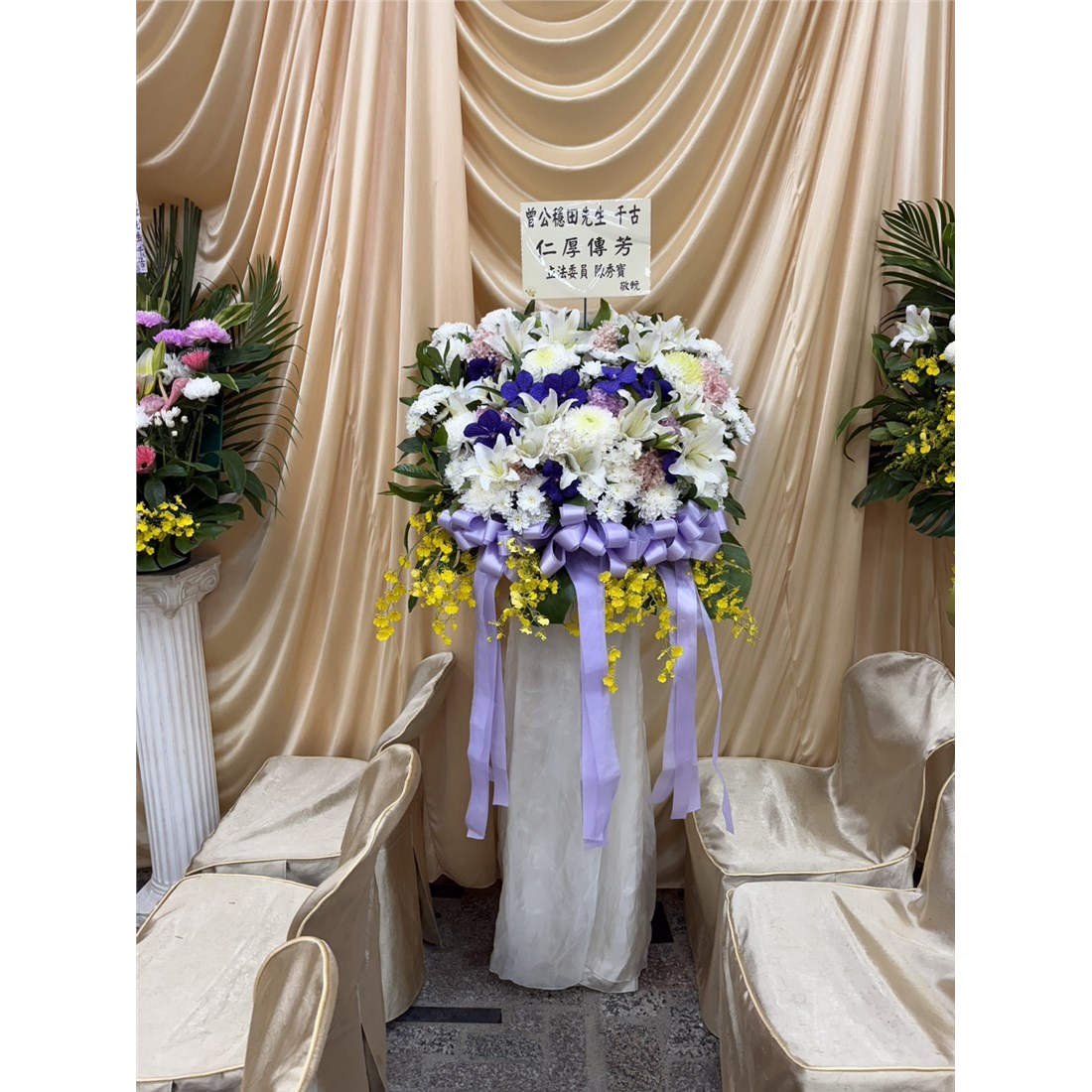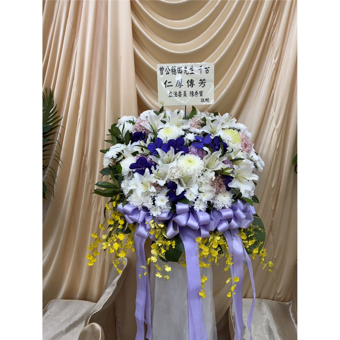 首頁 贈禮1(花籃/水果籃) 藝術花籃D款 商品型錄 藝術花籃D款 NT$ 4,600 供應商: 明星水果行 銷售地區 (詳細範圍): 臺北市, 新北市, 桃園市 商品流水號: 2025030205 此商品已售出次數:6 商品類別: 贈禮1(花籃/水果籃) > 喪事 > 花籃 購物操作說明: 分享: 分享 自訂數量: 10 25 50 75 100 150 200 數量 (單位:對 ) 1 小計 NT$0 備註事項: 加入購物車 我要結帳 回上一頁 回上一頁 客服諮詢(加Line好友): 商品說明 商品說明 商品類別:佈置 主要材質 ✿花材:百合、菊花、時令花材為主。✿基本會以高腳藝術花架+襯裙的高架花籃出貨。 顏色說明 ✿以當季花材為主。✿花材常有季節性短缺的問題,若該花材短缺圖片中花材會稍加更動將以等值的花材代替。 配件說明 ✿花泥、花盆、緞帶、布幔、花架。✿花盆、緞帶、布幔等圖片內之顏色和材料因市場因素、時節不同而有所調整,以收到實品為主。 佈置程序 ✿適用於喪禮弔唁、追思致意。✿請於送貨前3天完成訂購,以利出貨的安排。✿依據客戶所設定的送貨時間或訃聞告別式時間提早送至會場。✿訂購花禮皆有免費提供花卡,請於結帳前填寫清楚贈送人資訊。✿訂購完成後,請加入客服LINE@以利後續提供花卡及到貨照片。✿客服人員收到訂單後,會與您連繫確認送貨資訊及花卡內容。✿商品送達後會拍照上傳到網站,客戶可登入網站查詢到貨照片並給予評價。✿如有疑問或緊急配送需求時, 請洽詢線上客服或撥打客服專線。✿花材會隨季節而有所不同,如遇市場短缺或品質不良,得以等值花材替代,圖片中只提供參考,會依主花不變的狀況下,依等值,色系、尺寸不變下作調整,敬請見諒!✿鮮花屬於生鮮產品,因有保鮮期限,不適用於商品使用七天鑑賞期,商品送達一律不接受退貨。✿鮮花會因環境.氣候.溫度.溼度不同原因影響保存天數,請擺放於陰涼通風處,注意水分須保持。 全部評價 客戶評價 (6) 廠商總評 ( 6 ) 客戶評價 [商品到貨] 送貨地址:桃園市桃園區 送貨時間: 2025-11-11 商品到貨照片: [商品到貨] 送貨地址:臺北市大安區 送貨時間: 2025-11-10 商品到貨照片: [商品到貨] 送貨地址:臺北市大安區 送貨時間: 2025-11-07 商品到貨照片: [商品到貨] 送貨地址:新北市板橋區 送貨時間: 2025-09-26 商品到貨照片: [商品到貨] 送貨地址:桃園市中壢區 送貨時間: 2025-09-01 商品到貨照片: [商品到貨] 送貨地址:桃園市桃園區 送貨時間: 2025-08-23 商品到貨照片: 總筆數:6 供應商評價 5 很好 好 普通 不好 很不好 6 0 0 0 0 相似商品 大型藝術高架花籃 NT$7,700 高雅花籃(A05款) NT$6,100 高貴高架花籃(A03款) NT$6,100 典雅花柱 NT$4,500 弔唁高架花籃(B03款) NT$3,700 典雅藝術高架花籃B-2款 NT$3,600 高架藝術花籃E NT$3,450 典雅高架藝術花籃 NT$3,450 典雅高架花藍A款 NT$3,100 高架花籃(A01款) NT$2,500 藝術高架花籃B款(限殯儀館告別式) NT$2,100 藝術高架花籃B款 NT$1,900 喪禮百貨/花籃/蓮花/罐頭塔 喪禮服務人員/車輛 商品成功加入購物車 !