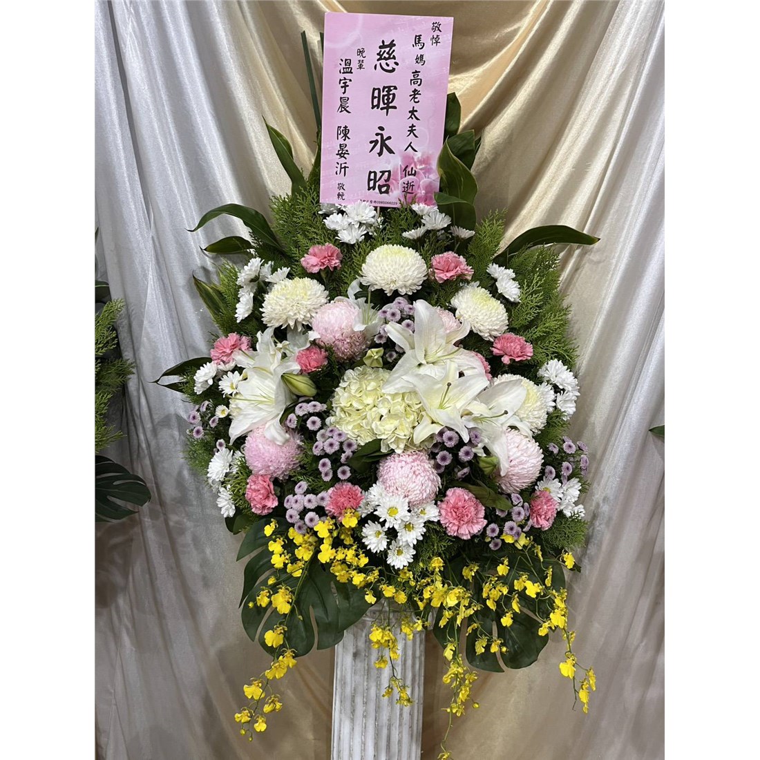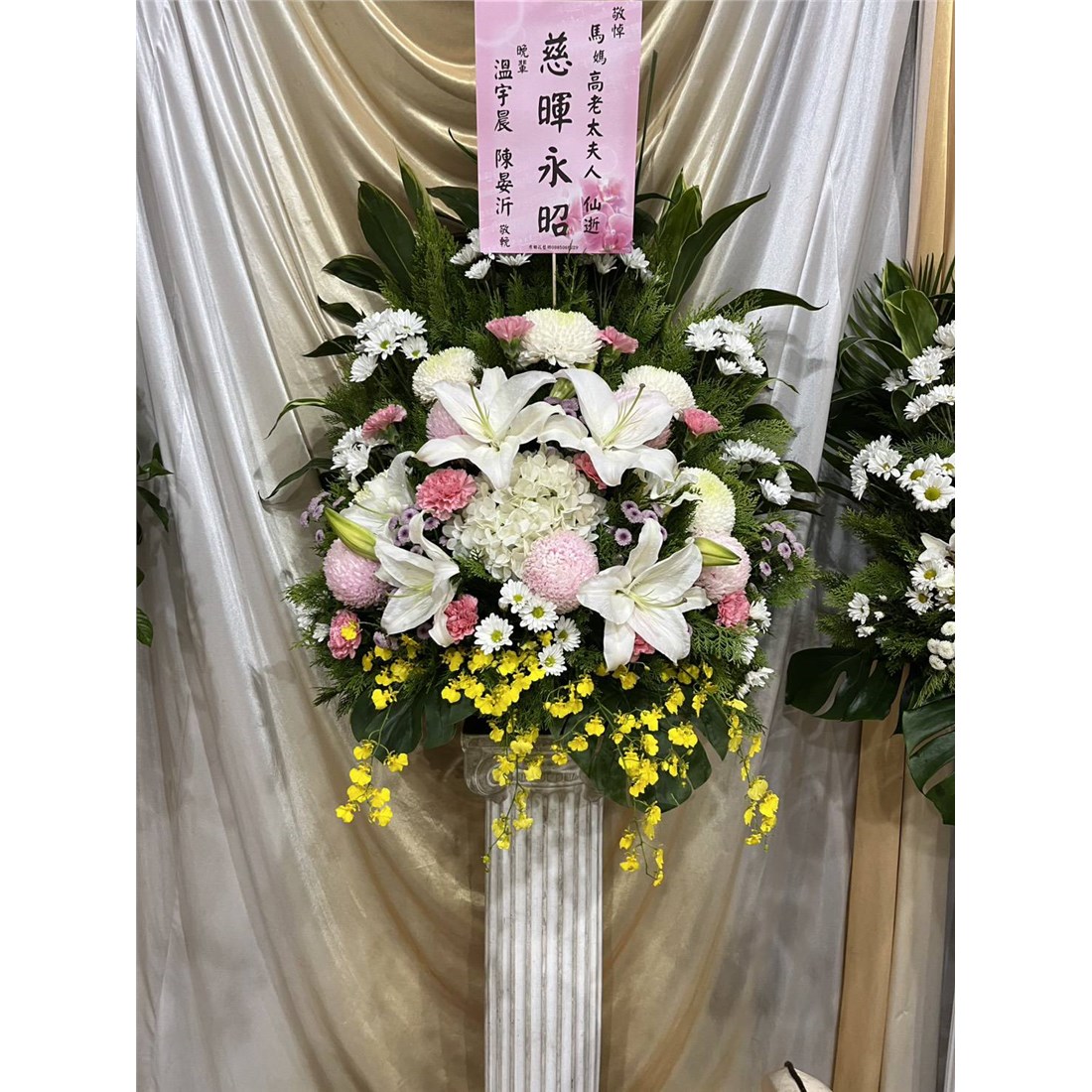 首頁 贈禮1(花籃/水果籃) 典雅羅馬柱(豐A款)(限殯儀館告別式) 商品型錄 典雅羅馬柱(豐A款)(限殯儀館告別式) NT$ 2,300 供應商: 原鄉企業社 銷售地區 (詳細範圍): 臺北市, 新北市 商品流水號: 2025050141 此商品已售出次數:6 商品類別: 贈禮1(花籃/水果籃) > 喪事 > 花籃 購物操作說明: 分享: 分享 自訂數量: 10 25 50 75 100 150 200 數量 (單位:對 ) 1 小計 NT$0 備註事項: 加入購物車 我要結帳 回上一頁 回上一頁 客服諮詢(加Line好友): 商品說明 商品說明 商品類別:佈置 主要材質 ✿依當天限有花栽配色.隨機出貨款,以當季花材為主或依年齡調整色系若能接受才訂購。✿花材常有季節性短缺的問題,若該花材短缺圖片中花材會稍加更動將以等值的花材代替。。✿基本會以高腳藝術花架+襯裙的高架花籃出貨,羅馬柱因數量較少,若有現貨才能出貨。✿殯儀館內會以羅馬柱或高架花籃為主不再另行通知, 靈堂或館外都使用高架花籃。 配件說明 ✿花泥、花盆、緞帶、布幔、花架。✿花盆、緞帶、布幔等圖片內之顏色和材料因市場因素、時節不同而有所調整,以收到實品為主。 佈置程序 ✿適用於喪禮弔唁、追思致意。✿請於送貨前3天完成訂購,以利出貨的安排。✿依據客戶所設定的送貨時間或訃聞告別式時間提早送至會場。✿訂購花禮皆有免費提供花卡,請於結帳前填寫清楚贈送人資訊。✿訂購完成後,請加入客服LINE@以利後續提供花卡及到貨照片。✿客服人員收到訂單後,會與您連繫確認送貨資訊及花卡內容。✿商品送達後會拍照上傳到網站,客戶可登入網站查詢到貨照片並給予評價。✿如有疑問或緊急配送需求時, 請洽詢線上客服或撥打客服專線。✿花材會隨季節而有所不同,如遇市場短缺或品質不良,得以等值花材替代,圖片中只提供參考,會依主花不變的狀況下,依等值,色系、尺寸不變下作調整,敬請見諒!✿鮮花屬於生鮮產品,因有保鮮期限,不適用於商品使用七天鑑賞期,商品送達一律不接受退貨。✿鮮花會因環境.氣候.溫度.溼度不同原因影響保存天數,請擺放於陰涼通風處,注意水分須保持。 全部評價 客戶評價 (6) 廠商總評 ( 0 ) 客戶評價 [商品到貨] 送貨地址:新北市板橋區 送貨時間: 2025-12-12 商品到貨照片: [商品到貨] 送貨地址:新北市板橋區 送貨時間: 2025-11-04 商品到貨照片: [商品到貨] 送貨地址:臺北市大安區 送貨時間: 2025-08-23 商品到貨照片: [商品到貨] 送貨地址:臺北市大安區 送貨時間: 2025-08-14 商品到貨照片: [商品到貨] 送貨地址:臺北市大安區 送貨時間: 2025-06-21 商品到貨照片: [商品到貨] 送貨地址:臺北市大安區 送貨時間: 2025-06-21 商品到貨照片: 總筆數:6 供應商評價 很好 好 普通 不好 很不好 0 0 0 0 0 相似商品 典雅藝術高架花籃16 NT$18,500 高架藝術花籃G款 NT$7,700 A06 羅馬柱花籃 NT$6,500 典雅高架藝術花籃 NT$3,900 精緻高雅高架花籃 NT$3,880 典雅高架花籃(A05款) NT$3,600 高架花籃E款 NT$3,600 A09 精緻花籃 NT$3,200 藝術高架花籃A款 NT$3,100 典雅高架花籃A款 NT$3,000 典雅高架花籃(A01款) NT$2,760 高雅高架花籃(A02款) NT$2,500 喪禮百貨/花籃/蓮花/罐頭塔 喪禮服務人員/車輛 商品成功加入購物車 !